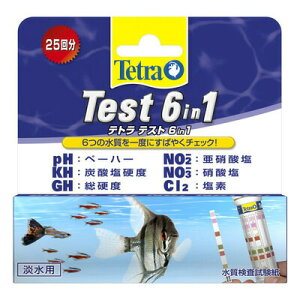 6つの水質を一度にすばやくチェックできる水質検査試験紙です。試験紙を水槽の水に1秒ひたすだけで、ペーハー、炭酸塩硬度、総硬度、亜硝酸塩、硝酸塩、塩素の6項目の水質チェックが出来る試験紙。