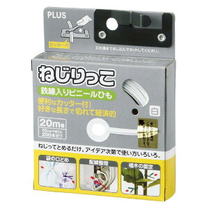 カラー:ホワイト◆商品名:プラス ねじりっこ カッター付 TF-800ホワイト 82-643ねじるだけで、簡単に止まる。保管ケースにカッター付き【外形寸法】W 114 × D 85 mm【長さ】20m巻【材質】白なまし鉄線...