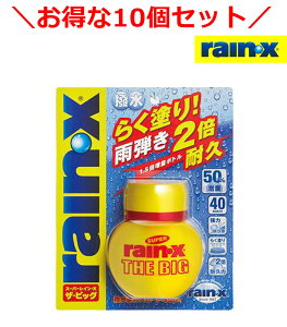 レイン・X THE BIG のお得な10個セットです。 簡単に塗り込みが出来る「らくヌリ」ボトルの50%増量タイプ。 耐久2倍で長期にわたり強力に雨を弾きます。 撥水走行速度時速40km(車の走行状況などの条件により...