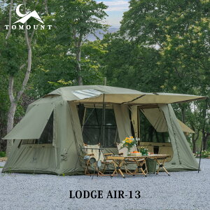 商品名称 TOMOUNT LODGE AIR-8 TENT。素材 本体:TC(ポリコットン)。組立サイズ 320 x 250 x 220 cm。収納サイズ 75 x 40 x 45 cm。重量 25 kg...