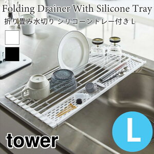 tower / 折り畳み水切りシリコーントレー付き L 幅広く活躍 折り畳める水切り 使わない時は丸めてコンパクトに片づけられる『 tower( タワー )折り畳み水切り シリコーントレー付き L 』...