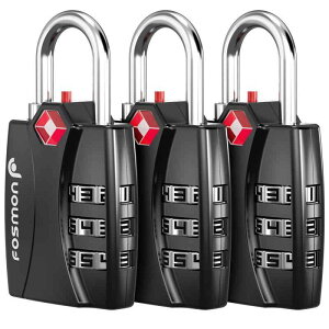 Fosmon TSAロック認定 4桁ダイヤルロック 南京錠の鍵 海外旅行荷物スーツケース用 4ダイヤルロック (ブラック)