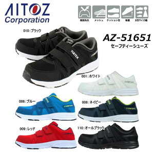 セーフティーシューズ(AZ-51651) 商品説明 ☆樹脂先芯で超軽量!片足約270g(26.0cm)軽作業向けのセーフティーシューズです。☆高級感のある独自のメッシュ素材による通気性でムレを軽減します。☆素早く着脱が可能な面ファスナ...