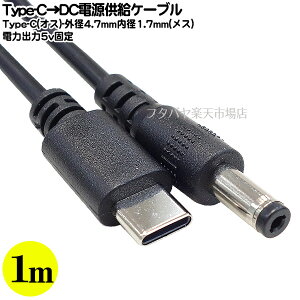 Type-C→外径4.7mm内径1.7mm電力供給ケーブル モバイルバッテリー、USB充電器よりDC端子へ電力を供給いたします。 ※必ず5v以内でご利用ください。 ※DC端子はセンタープラス仕様です。...