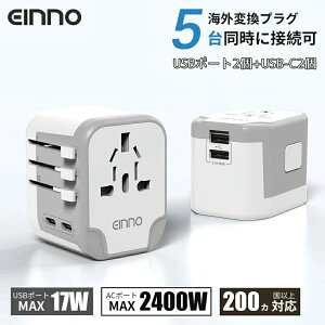 USB-Aポートと2 USB-Cポート付きと1*ACコンセント 4種セットACアダプター US/UK/EUR/AUS対応 TYPE-C 2000W/8A 5.6A Cタイプ海外旅行用マルチプラグ「海外専用」変換プラグ...