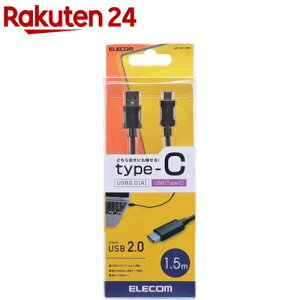 ライ>USBケーブル>エレコム USBケーブル USB2.0 C-A Type-Cコネクタ ブラック 1.5m ブラック (1個)【エレコム USBケーブル USB2.0 C-A Type-Cコネクタ...