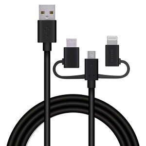 【特長】●USB2.0(microB)端子をLightning端子、USB Type-C端子に変換できるアダプタがついた、USB microBケーブルです。●変換アダプタを着脱することで、Lightning端子搭載機器、USB Typ...