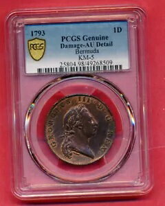 BERMUDA -PENNY - 1793 - SHIP - K5 - PCGS GENUINE AU98 - - NEW SPECIAL PRICE !商品について販売者のコメント「希少です。赤い光沢がたっぷりある最高級グレードのひ...