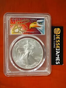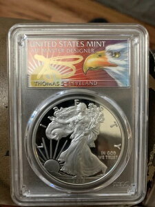 2023 SILVER EAGLE PCGS MS70 THOMAS CLEVELAND FIRST STRIKE EAGLE WITH SUN LABEL