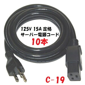 電源コードの人気商品!!長さ:3mの 電源接続コード【10本1組】UPS・サーバー用電源コード 100V専用 5-15:C19 接続コード。サーバーやUPSの電源ケーブルとして使用できるC-19コネクター付です。IECコネク...