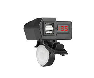 ハンドルやサイドミラーに取り付け可能 USB2ポートを搭載しており、1つのポートから最大で2.1Aの出力が可能で、合計で最大4.2Aの出力が可能 です。 電圧計を搭載しており