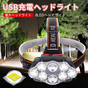 製品名:多機能8コアストロングライトヘッドライト ランプ芯:XPEランプビーズ8個 素材:ABS 電池:大容量リチウム電池を内蔵 充電方法:USB直接充電 ギア:4速(1速:ミドルとセカンドライトが点灯、2速:両側に6灯...