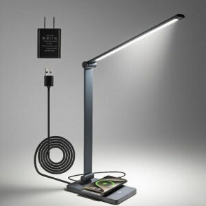 【超高輝度・多段階調光】デスクライトの最大550ルーメンで、市販品より明るい。安定した電源供給を可能にする日本PSE認定アダプターを搭載。5段階の色温度設定(白色、昼光色、温白色光、黄色、電球色)と5段階の明るさ調整ができ、軽くタ