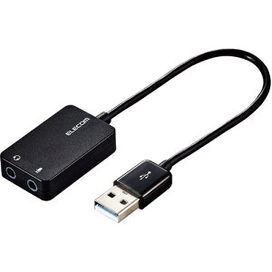 エレコム USB-AADC01BK USBオーディオ変換アダプタ ブラック ●ステレオミニプラグのヘッドセットをUSB端子に接続できる変換アダプタです。 パソコン用のヘッドセットとスマホ用のマイク付イヤホンの両方に対応しています...