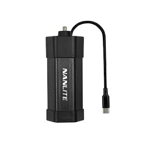 NP-F550バッテリーを使用。100%の明るさで本体の利用可能時間に加え、約70分間単体で使用できます。