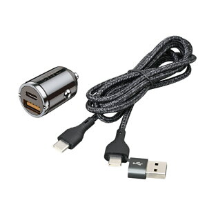 アクセサリーソケットにすっきり収まる無駄のない形状のカーチャージャー。折りたたみ式の取っ手付きで、取り出しも簡単にできる。PD対応機器を高速充電でき、最大30Wまでの出力に対応。USB PD対応Type-Cポートと通常のUSB Typ...