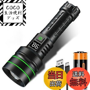 懐中電灯 led 強力 軍用高ルーメン超高輝度ルーメン Type-C USB充電式 超長遠射 ハンディライト 明るい LED 新型 フラッシュライト 6モード調光 ズーム式 アルミニウム合金 メモリ保存モード LCD画面に電力レベルを...