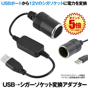 シガーソケット USB 変換 シガレットライターソケット USBポート 12V 車用 メス変換アダ !USB⇒12Vのシガソケットに変換♪