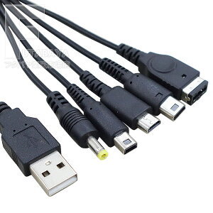 ポータブルゲーム機充電ケーブル 3DS 2DS DSi GBA-SP WiiU PSPの充電端子に対応 5種類の端子が付いている モバイルバッテリーやシガーソケット用USB充電器、一般用USB充電器に接続が出来るUSB A端子タイプ ...
