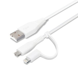 PGA PG-LMC05M04WH 変換コネクタ付き 2in1 USBケーブル(Lightningµ USB) 50cm ホワイト 発売日:2019年2月20日●Lightning・micro USBの2種のコネクタを1本で...