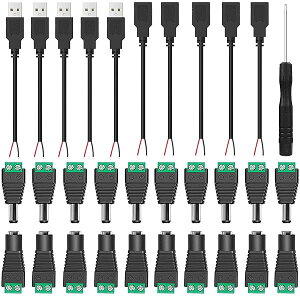 ■商品説明■ 12V DC電源コネクタ 5.5mm x 2.1mm 5A オスおよびメスDC電源ジャックプラグアダプタ CCTVカメラ/リードストリップ用5個 USBオスケーブル 5個 USBメスケーブル プラスドライバー 動作電圧:...