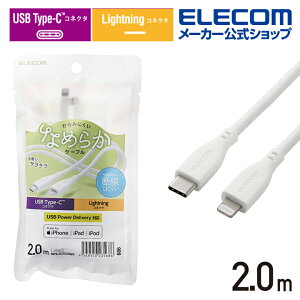 USB-C to Lightningケーブル/やわらか/2.0m/ホワイト ■Lightningコネクタを搭載したiPhone・iPod・iPadと、USB-Cポートを搭載したパソコンを接続し、充電・データ転送ができるUSB-C...