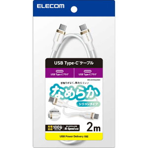 エレコム MPA-CC5PSSA20WH USB-C to C ケーブル 2m PD 100W シリコン素材 絡みにくい スマホ・タブレット等対応 ホワイト 500