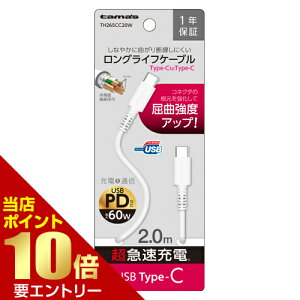 多摩電子工業株式会社 C to C ロングライフケーブル 2.0m ホワイト TH265CC20W 内容量 1個 仕様 ・ケーブル長:約2.0m ・ケーブル定格:20V/3A ・USB規格:USB2.0...