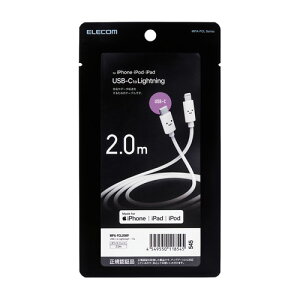 プライ>データ通信ケーブル>エレコム USB C-Lightningケーブル iPhone 充電 やわらか 2.0m ホワイト MPA-CLY20WH (1個)【エレコム USB C-Lightningケーブル...