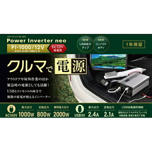 ・モバイル機器の充電などに 波形:擬似正弦波 入力電圧:12VDC(11〜15VDC) 出力電圧:110VAC 5VDC 継続出力:75W 周波数:60Hz AC出力ソケット:ユニバーサル(日本を