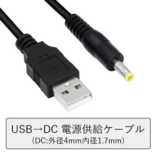 ■基本仕様 機能:USB-DCオス から DCジャックへ変換用ケーブル 入力:USB TypeA, 出力:DCジャック (外径4.0mm内径1.7mm) ケーブル長さ:約1m カラー:ブラック 最大流す電流:5V/2A(2A以上の場合...
