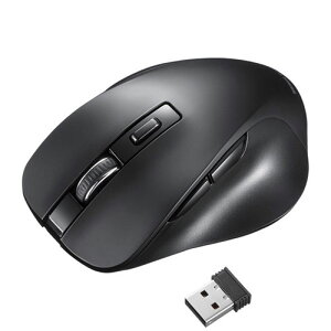 左右非対称で握りやすい形状のワイヤレスマウス。ブラック●握りやすい形状で中型サイズのワイヤレスマウスです。●マウスポインタを動かさず手元のサイドボタンで操作できる「戻る・進む」の2ボタンを搭載しており、Webブラウザで操作