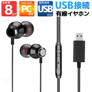 【送料無料】 マイク付きUSBイヤホン密閉性が高く、長時間の使用にも最適なカナル式 しっかり音を拾う口元マイク 手元で操作できるリモコン ケーブルクリップ付属 製...