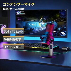 ■商品説明■ USB コンデンサーマイク ゲーミングマイク PC マイク RGBライティング 配信用マイク カーディオイド指向性 ワンタッチミュート ポップフィルター プラグ&プレイ音量調節 スタンド付き...