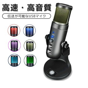 USB コンデンサーマイク ゲーミングマイク PC マイクセット ノイズキャンセリング ミュートボタン 単一指向性 RGBライティング 音量コントロール プラグ&プレイ パソコンマイク ゲーム