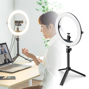 テレビ会議や動画配信に。きれいに映る自撮り用LEDライト+スタンド。<特長>●自撮り動画撮影やWEB会議、テレビ通話の際、LEDのライティング効果により、美しく映すことができます。●高輝度LEDライトを採用しています。LED調節バーでLED
