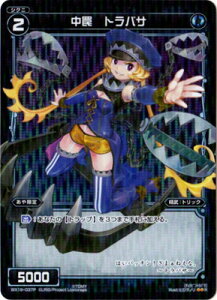 カード名 中罠 トラバサ [チュウビントラバサ] 色:青 カードタイプ :シグニ クラス:精武:トリック レベル:2 パワー 5000 限定条件:あや限定 【出】:あなたの【トラップ】を3つまで手札に加える。[WX-19] アンソルブ...