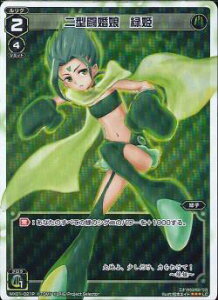 カード名 二型闘婚娘 緑姫 [ニガタトウコンキミドリコ] 色:緑 カードタイプ :ルリグ ルリグタイプ:緑子 レベル:2 リミット:4 グロウコスト:緑(1) 【常】:あなたのすべての緑のシグニのパワーを+1000する。 [WX-01...
