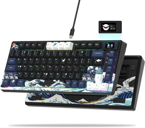 【色鮮やかなマルチメディアスクリーン】キーボード右上のDIYマルチメディアディスプレイスクリーンは、カスタムGIF画像、キャップスロック、接続モード、WIN/MAC、システム、バックライトの明るさ/速度、RGBモード/色、音量と言語などを視