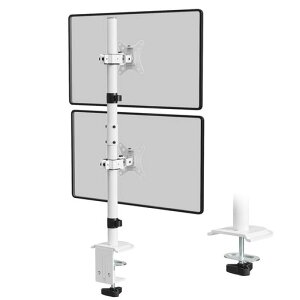 WORLDLIFT モニターアーム 上下2画面 縦 デュアル ロングポール ディスプレイアーム 17~32インチ対応 耐荷重各9kg 多角度調節 白 ホワイト