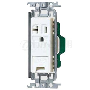 ●15A・20A兼用埋込アースターミナル付接地コンセント ●金属枠付 ●送り端子なし ●定格 20A 125V AC ●色: ホワイト ●適合プレート: ラウンド WTF7003W、スクエア WTF8003W (コンセントプレート・3...