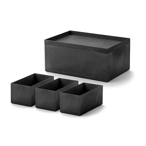 ボックス深型+インナー深型×3+ボックストレーの5点セット。再生材と発泡成形技術により樹脂使用量を削減して軽量化を実現。表面に現れる特徴的な模様(ホワイト/グレー)をデザインとして取り込んだ存在感のあるアイテム。スタッキ