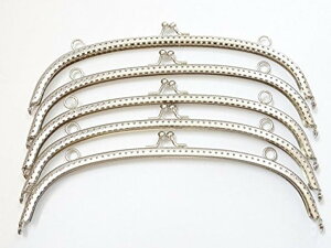 口金 5個 セット。口金サイズ 横:約20cm 高さ:約 5.5cm。口金は縫付けタイプで、チェーンを付けられる穴があります。色はシルバーです。