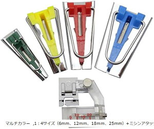 バリエーションコード : 2BBLEAQXIB c my select バイアステープメーカー 4サイズ & ミシンアタッチメントセット 簡単 手作り 作成 バイアステープ 6mm、12mm、18mm、25mm 各1、4サイズセット。 <