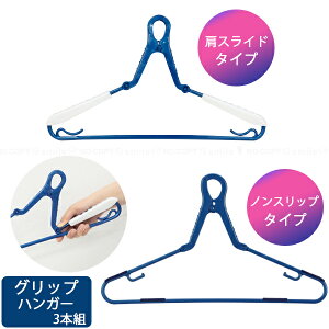 ハンガーの肩部を握るとキャッチ部が倒れるので、丸首シャツもラクに干せるグリップハンガー。 肩スライドタイプは、大きいシャツなども干しやすく、衣類のワキ部分が広がるので乾きやすくなります。 ノンスリップタイプは、耐久性に