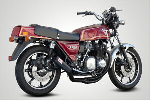 レンサーΦ100■詳細説明十分なバンク角を確保したうえで、美しいラインを描くスチール製集合マフラー。Z1000/MKIIに装着すれば、カワサキ空冷四発の醍醐味を