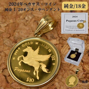 力強く空を駆け上がる天馬(ペガサス)の凛々しい姿の コインペンダント です。 純金のコイン中のペガサスがカッコよく感じられます。 表はペガサス姿で、裏はCHARLES III リバーシブルでお楽しみいただけます。